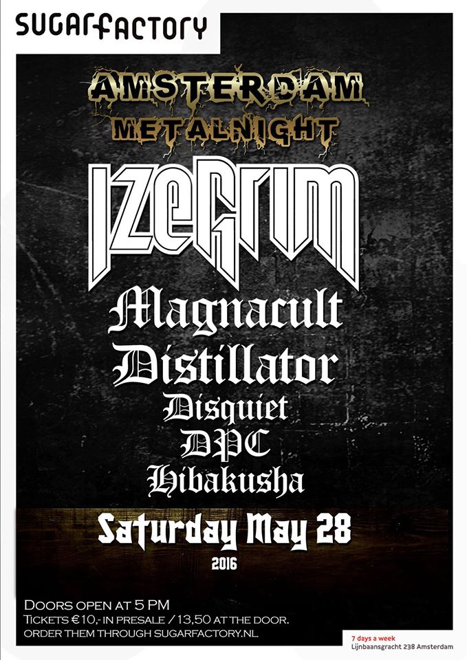 Dutch bands playing grindcore, death, thrash, groove and progressive metal. That’s what you can expect at Amsterdam Metalnight 2016 on Saturday, May 28 at the Sugarfactory, Amsterdam. A brand new mini-festival with Izegrim as headliner and some great other bands to promote the local metal scene. Tickets are only €10,00 and available at the website of Sugarfactory.